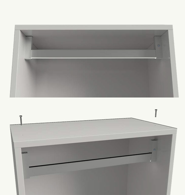 The profile is equipped with a rubber seal that protects the structure from mechanical shocks. GABAN-E integrates elegantly into wardrobes and under the shelves of walk-in closets.