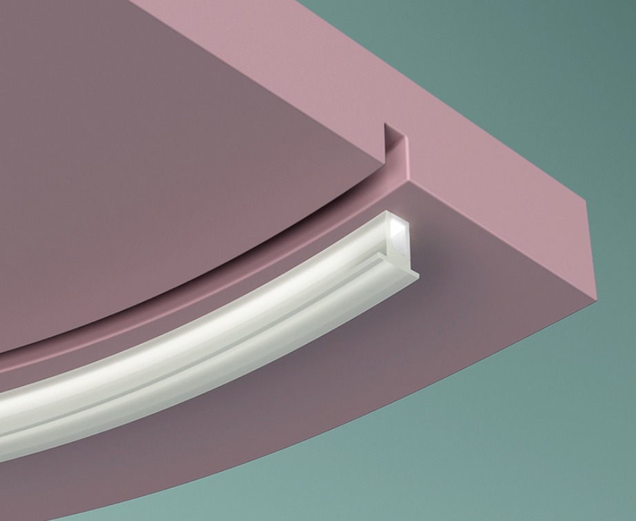 Profilo LED innovativo e flessibile progettato per essere installato ad incasso su basso spessore. Realizzato con materiali siliconici crea un effetto luce morbido.